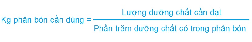 Sau khi lượng dưỡng chất cần thiết đã được xác định, lượng phân bón dựa vào hàm lượng dưỡng chất chứa trong nó theo công thức: