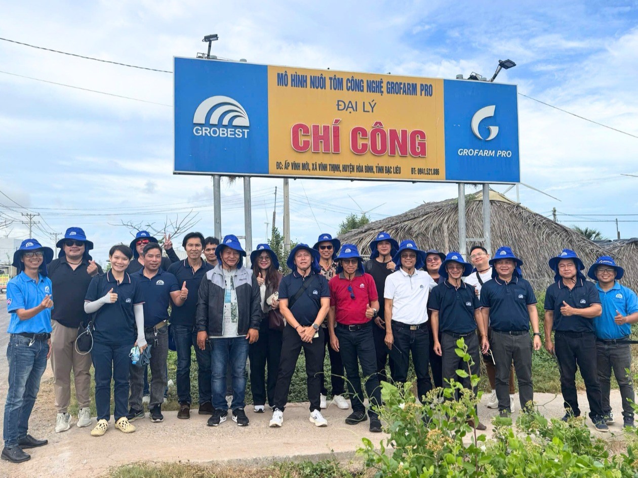 Trong chuyến tham quan, đoàn đã ghé thăm trại giống Grobest với quy trình quản lý chất lượng nghiêm ngặt và trực tiếp khảo sát các ao nuôi thương phẩm đang vận hành theo mô hình công nghệ cao GROFARM PRO, kết hợp sử dụng dòng sản phẩm nâng cấp năm 2025. Trong đó, Đại lý Chí Công (Bạc Liêu) là một trong những farm áp dụng GROFARM PRO thành công nhiều năm liền.